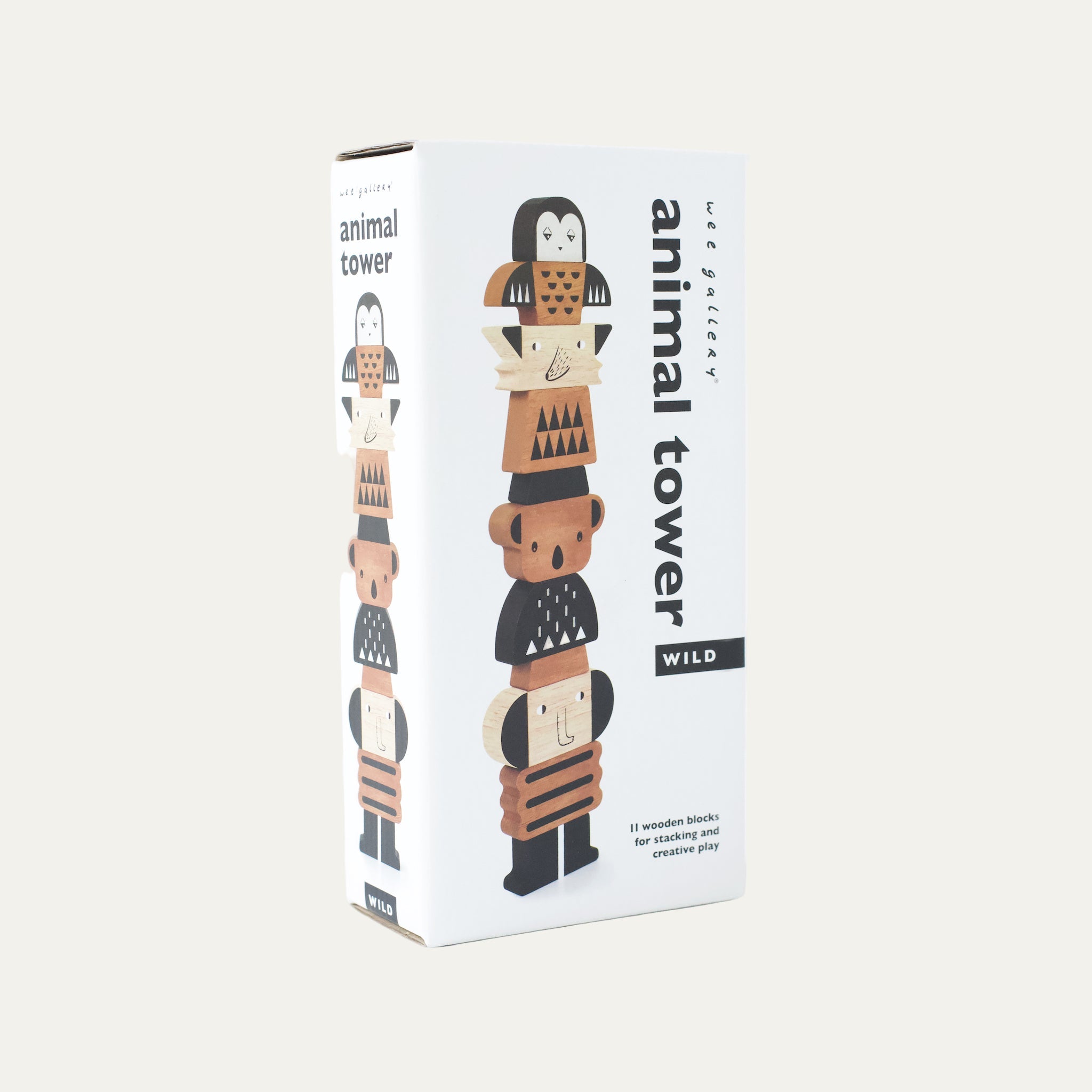 The Wild set includes Fox, Elephant, Owl, Koala, and multiple pieces to construct animal figures or one tall tower.