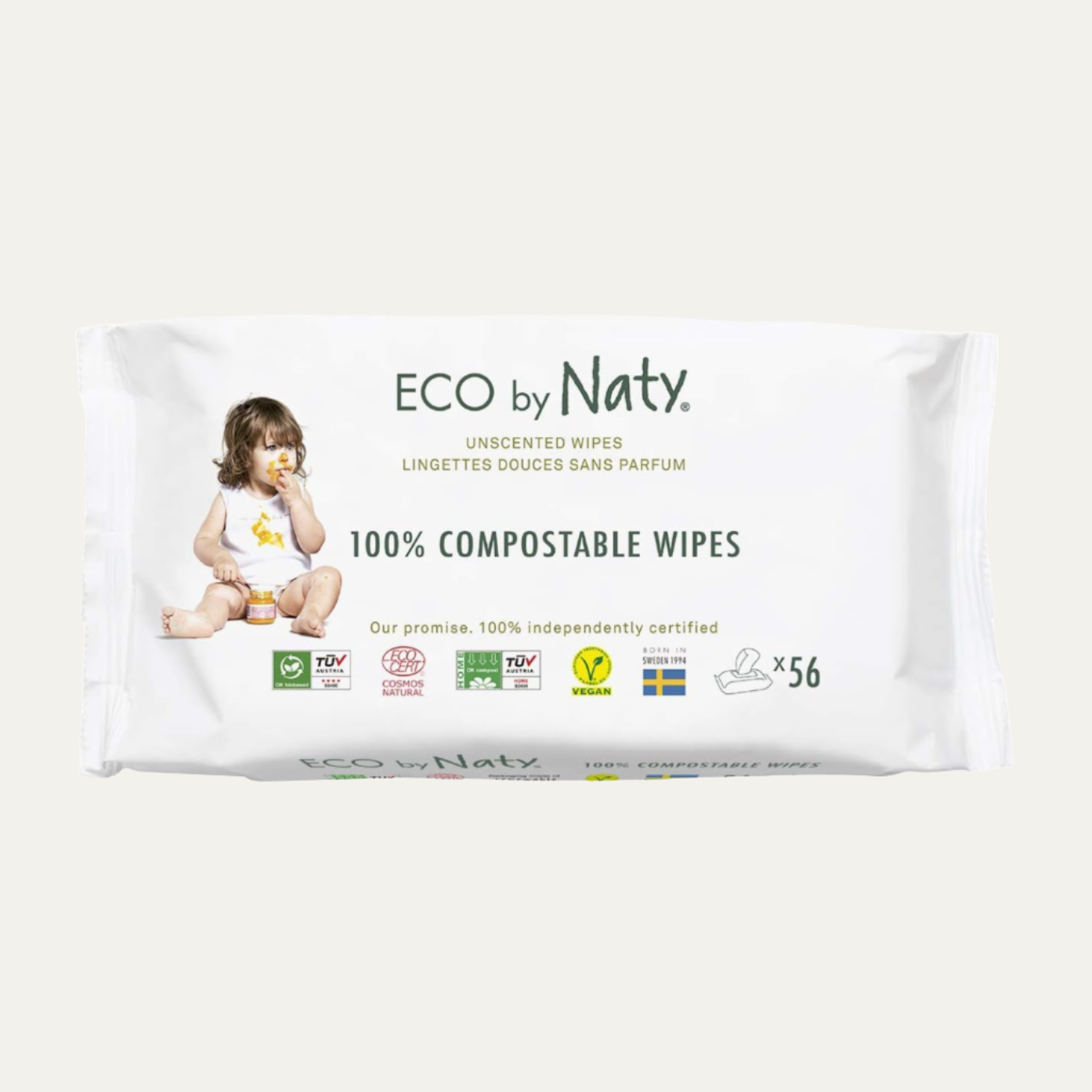 Give your baby’s bum the VIP treatment with our extra soft and thick wipes enriched with soothing chamomile. Naty wipes are made from natural ingredients, and are chlorine, plastic and perfume free. Our wipes have been independently certified to be 100% compostable, which means that no toxic lotions have been added that might make your tomatoes glow purple. And because they’re dermatologically tested, you can chill out about nappy rash and nasty allergic reactions too.