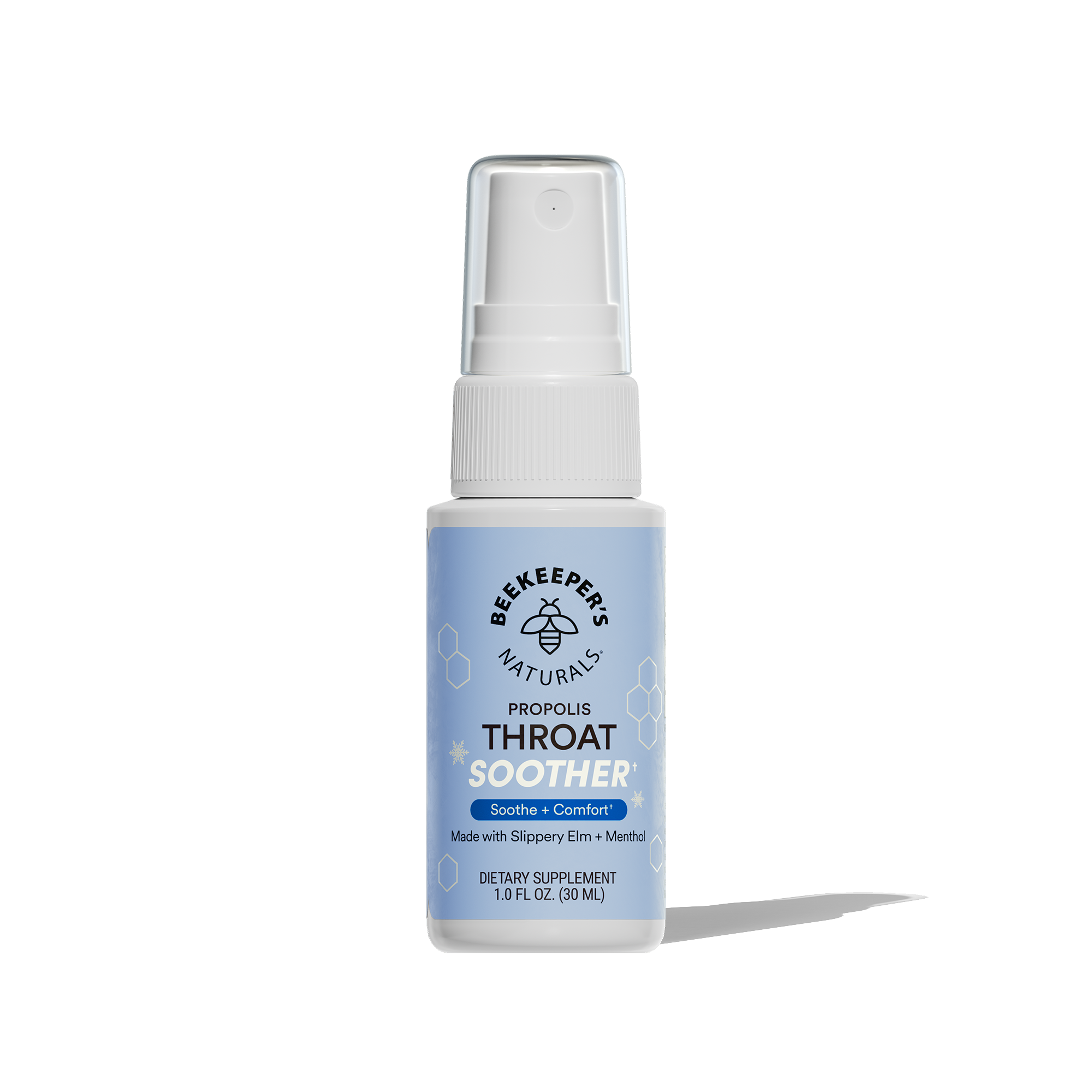When your throat is feeling scratchy, dry, or overused, refreshing comfort is just a spray away. Our advanced Throat Soother spray unites propolis, slippery elm, and menthol for an icy cool blast designed for rapid comfort and maximum throat relief, so you can keep going.