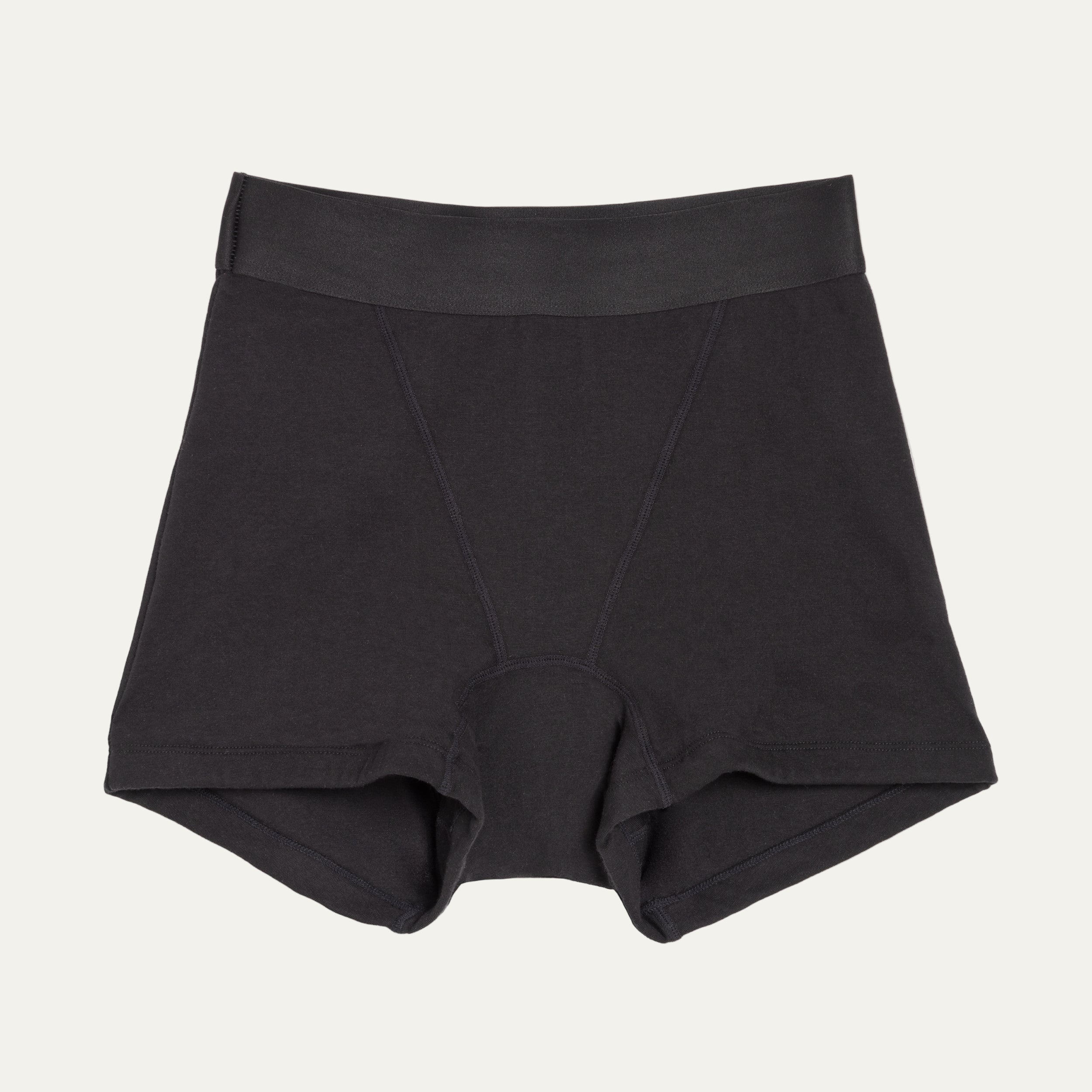 I’m a classic boxer shape designed to absorb period flow. But here’s the real headline: I’m for people who period, because not just women period. While I look and feel very un-periody, I have a four-layer towel system that can handle your period flow for hours and, with a wicking layer, can super absorb, so that you never experience any wetness. Made of organic cotton, I’m a little softer and cozier than a regular boxer, but that’s a nice feeling on your period.