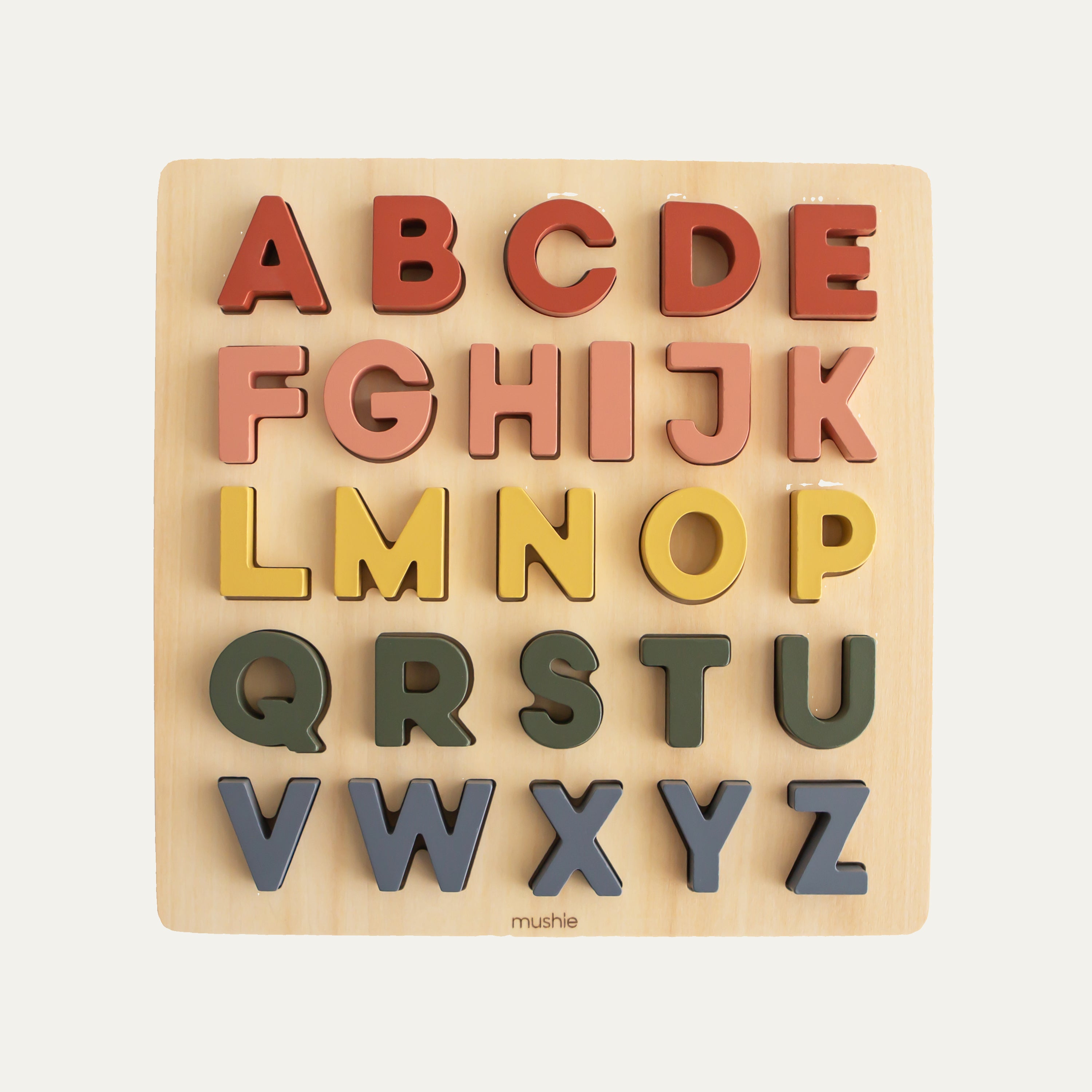 Introduce children to the world of letters and spelling with our wooden alphabet puzzle. Crafted from FSC certified wood and non-toxic paint, this is a timeless educational toy designed to help teach little learners ABCs, colors and simple words. The set includes 26 capital letters with smooth edges that are made for tiny hands. Littles will improve fine motor skills and hand-eye coordination as they grasp, manipulate and fit the pieces into their corresponding slots.
